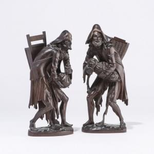 Deux gueux, noyer sculpté, Allemagne, XIXe s, 28x12x6 cm
