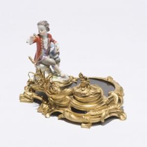 Encrier de style Louis XV orné d'un sujet en porcelaine d'après...