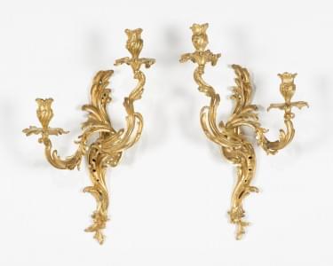 Paire d'appliques, bronze doré à vif mouvement rocaille, H 55 cm