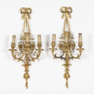 499. Paire d'appliques de style Louis XVI à trois lumières