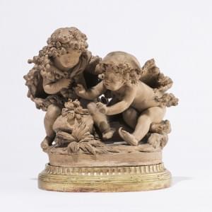 Amour et Psyché, groupe en terre cuite, porte une mention manusc...