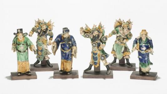 759. Six tuiles faîtières figurant des personnages