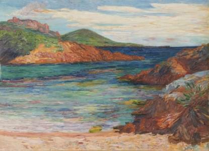 Rivage de Méditerranée, huile sur toile signée et datée (19)16,...