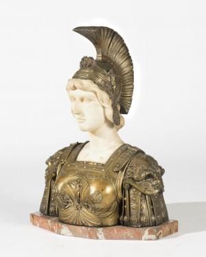 Athéna casquée, marbre blanc et bronze, signé et situé Florence,...