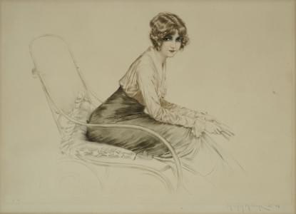 Elégante assise, pointe sèche signée et numérotée 32, 43x57