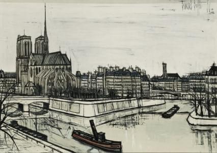 Notre-Dame et la Cité, lithographie signée et datée 1956 dans la...