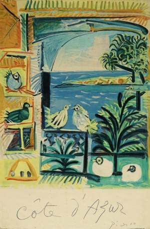 Côte d’Azur, lithographie en couleurs par Henri Derchamp, imprim...