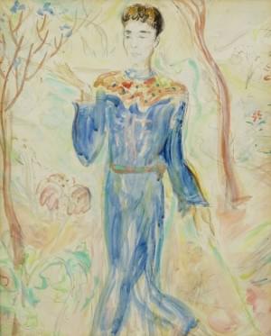 Ange musicien, gouache et aquarelle sur papier, 63x48 cm