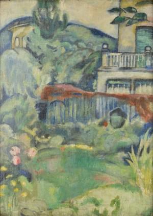Villa dans un jardin, huile sur carton, 45x34 cm