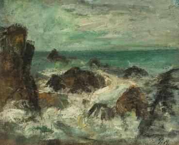 Mer et rochers, huile sur toile monogrammée, 36,5x44,5cm