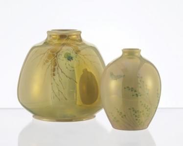 Deux vases Art Nouveau, porcelaine émaillée à décor de branches...