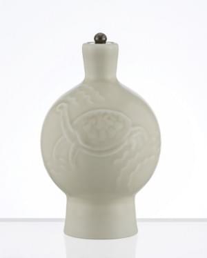 Bonbonnière, porcelaine émaillée vert turquoise à décor de colom...