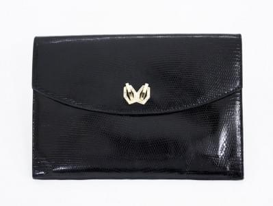 Cuir de lézard noir, garniture en métal doré sertie de brillants...