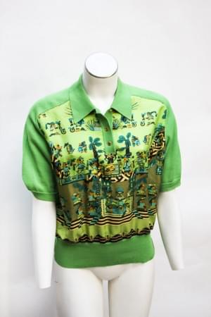 Soie, un à décor de pièce de joaillerie sur fond bleu et vert, 8...