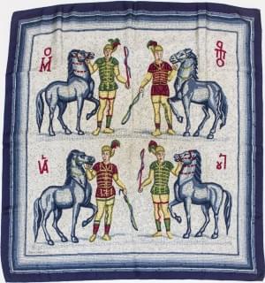 3035. Hermès, foulard à décor de mosaïque romaine représentant quatre...
