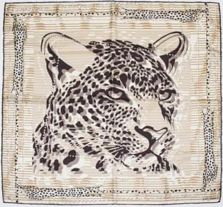 Carré en soie à décor de scène de chasse sur fond crème et beige...