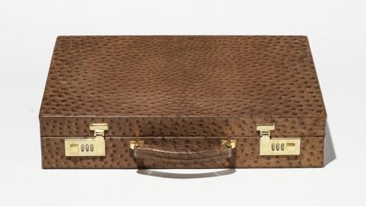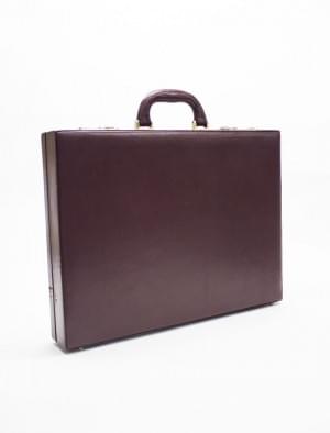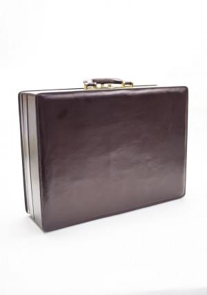 Cuir lisse couleur havane, garniture en métal doré, fermoir à dé...