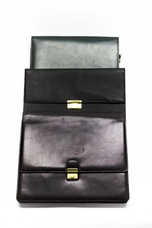 Cuir lisse noir et anthracite, garniture en métal et métal doré,...