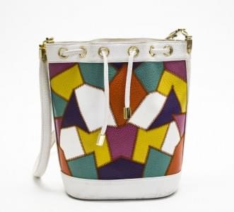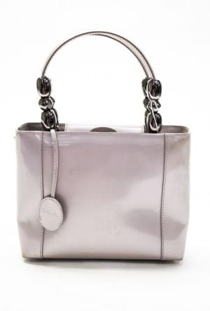 Cuir couleur perle verni, double poignée ornée de perles de méta...