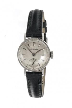 Cadran et aiguilles dorés, fermoir serti d'un saphir, boitier en...