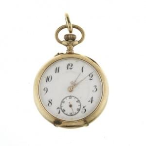 Cadran blanc, aiguilles dorées, métal doré, D 17 mm, dans son éc...