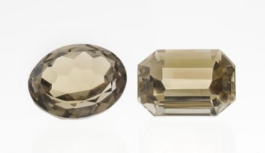 Lot de deux quartz fumés sur papier, l'un taille ovale et l'autr...
