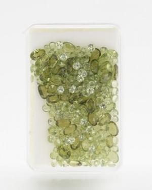Lot de péridots de tailles diverses sur papier, env. 50 ct