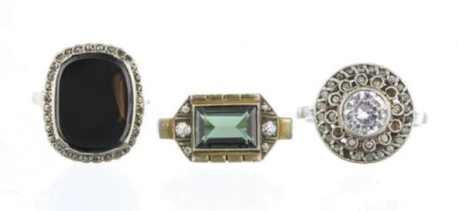 3094. Lot de trois bagues anciennes, une sertie d'une plaque d'onyx, u...