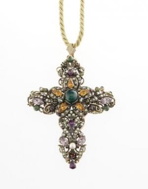 3102. Pendentif croix serti de diverses pierres de couleurs et pierres...