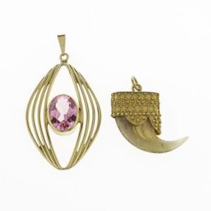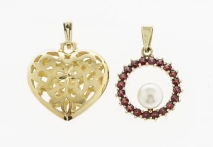 3105. Lot de deux pendentifs, l'un à motif de cœur et l'autre serti de...