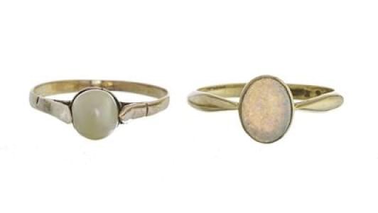 Or 750, 585 et argent, doigt 52-12, 51-11 et 50-10, poids brut 8...
