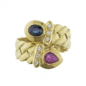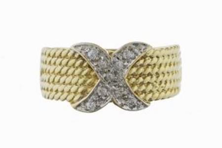 3116. Bague deux ors tressée et sertie de diamants d'imitation