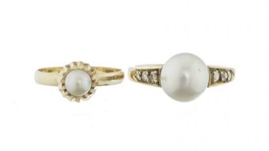 3164. Bague sertie d'une perle entourée de diamants (env. 0.3 ct)