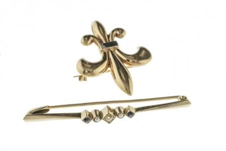 3125. Lot d'une broche à motif de fleur de lys et d'une broche barrett...