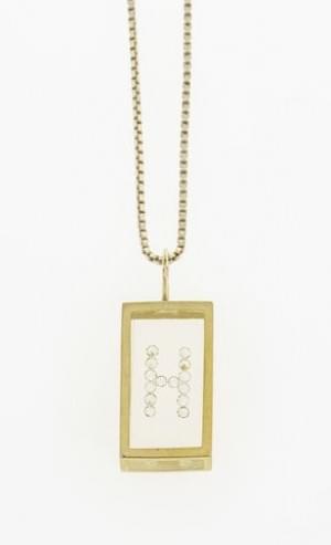 3130. Collier retenant un pendentif enfermant un H en diamants d'imita...