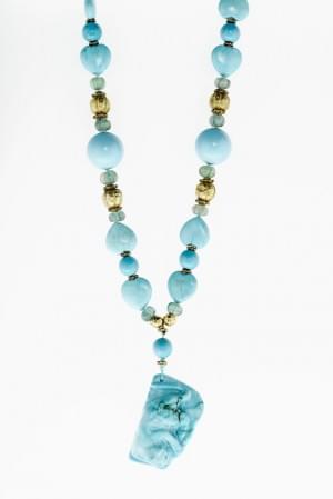 3138. Collier de perles de turquoise ponctué de perles de fluorite et...