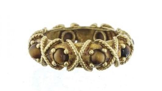 3143. Anneau stylisé serti de demi-perles d'oeil de tigre