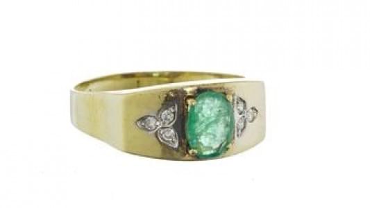 3149. Bague sertie d'une émeraude épaulée de diamants