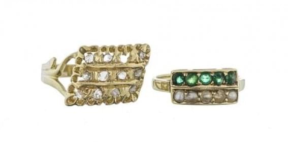 3154. Lot de deux bagues anciennes, l'une sertie de diamants en rose,...