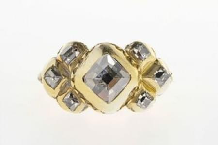 3120. Bague sertie d'un diamant taille hollandaise épaulée de roses de...