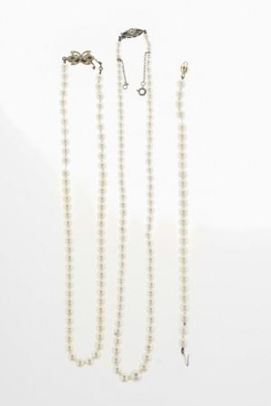 3169. Lot de deux colliers de perles dont un en chute, et d'un bracele...