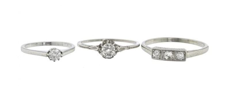 3174. Lot de trois bagues serties de diamants dont deux solitaires tai...