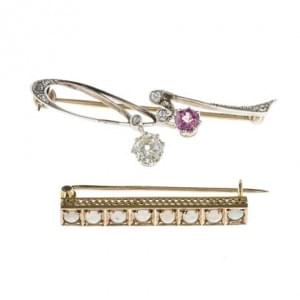 3176. Lot de deux broches, l'une sertie d'un diamant taille ancienne (...