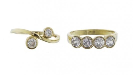 3150. Lot de trois bagues, une sertie de quatre brillants, une sertie...
