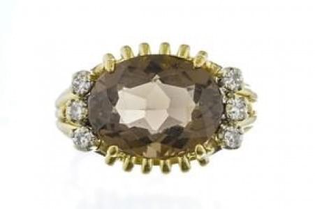 3180. Bague sertie d'un quartz fumé épaulé de diamants