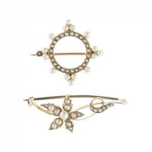 3202. Lot de deux broches anciennes serties de demi-perles