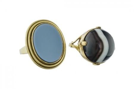 3203. Lot de deux bagues, l'une sertie d'une plaque de calcédoine, l'a...