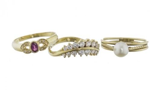 Or et or gris 750, doigt 49-9 et 55-15, 10 g