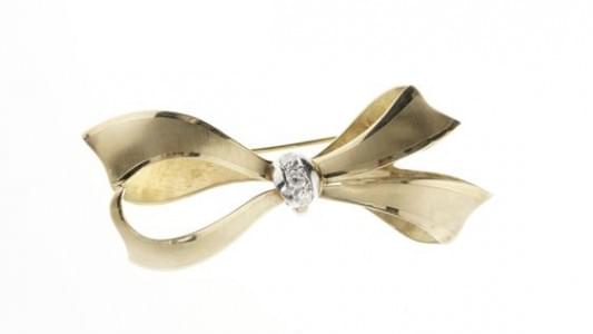 3210. Broche noeud retenu par une barrette sertie de brillants