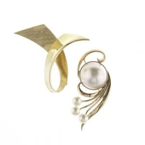 3236. Lot de deux broches stylisées dont l'une en or satiné